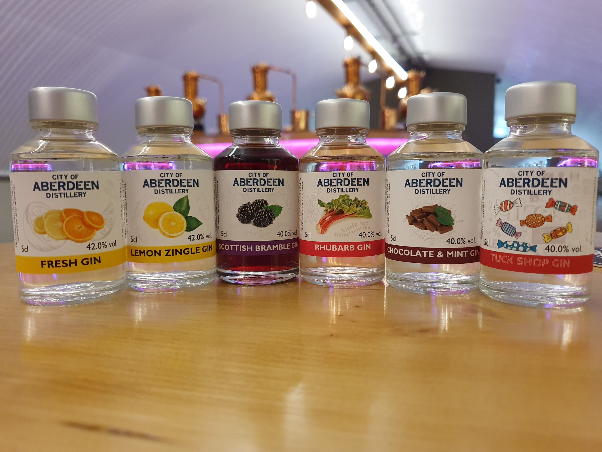 All distilled here in Aberdeen City. Buy online or at the distillery.