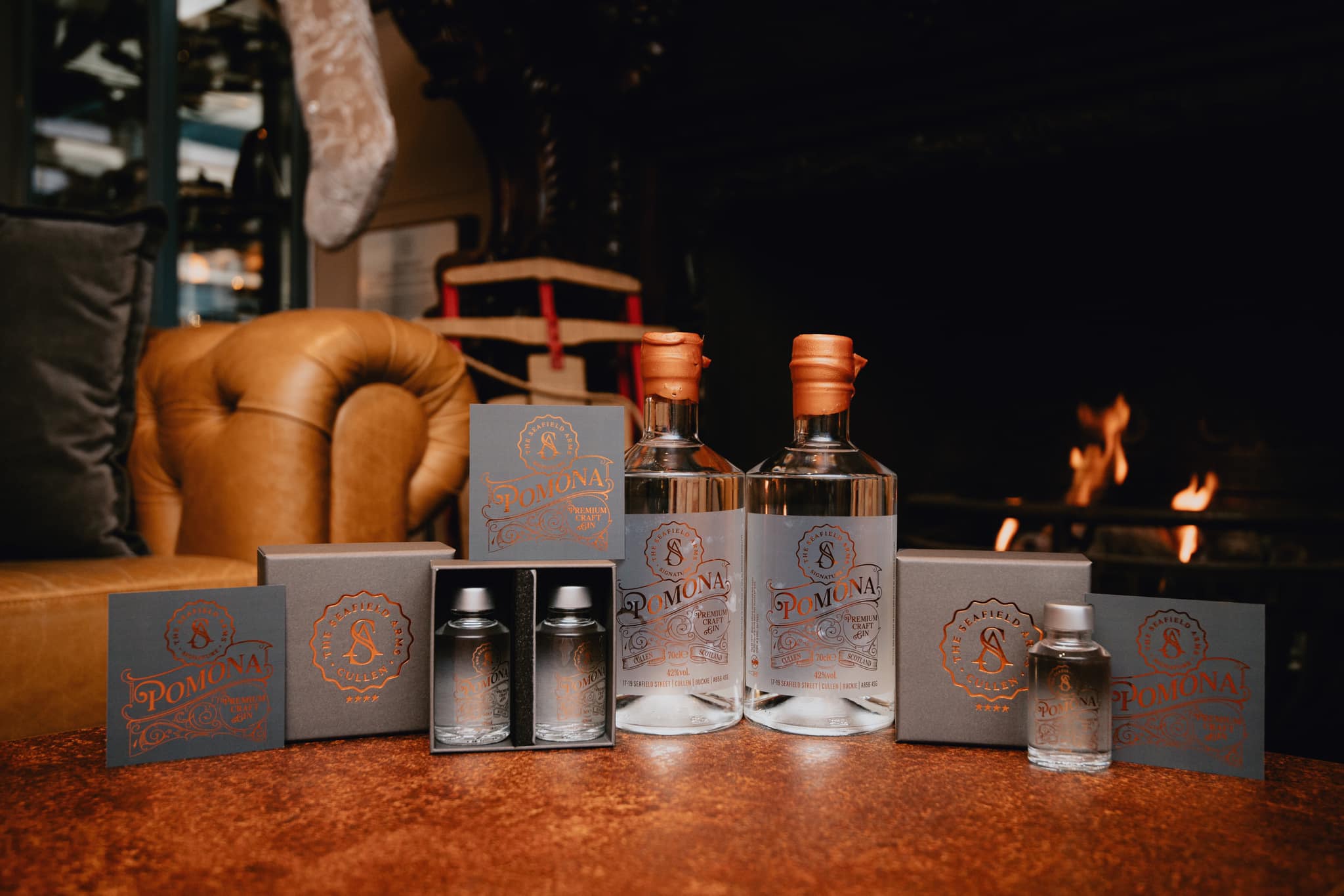The Seafield Arms Hotel - Cullen, has had their own custom boutique gin designed by the distillery and is made from sweet and spiced orchard apples before handing over to star anise and the warming notes of cassia. Fragrant black pepper and allspice berries, impact a delightful finish to the gin. The perfect garnish to the gin is a slice of red apple.